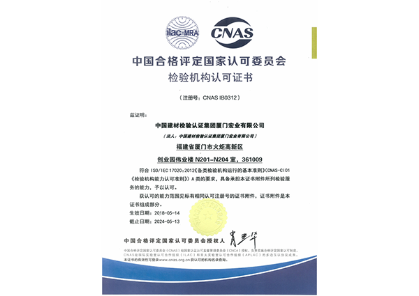 CNAS檢驗(yàn)機(jī)構(gòu)認(rèn)可證書
