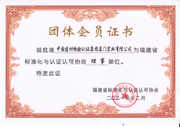 廈門市檢驗認證協(xié)會副會長單位