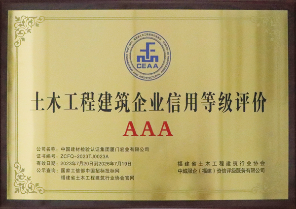 土木工程建筑企業(yè)信用等級評價AAA