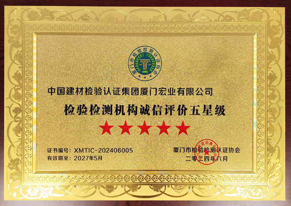 廈門市檢驗檢測機構誠信評價五星級企業(yè)