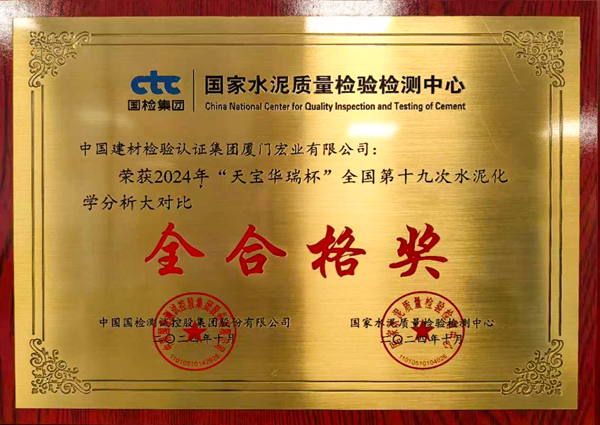 2024年“天寶華瑞杯”全國第十九次水泥化學分析大對比全合格獎