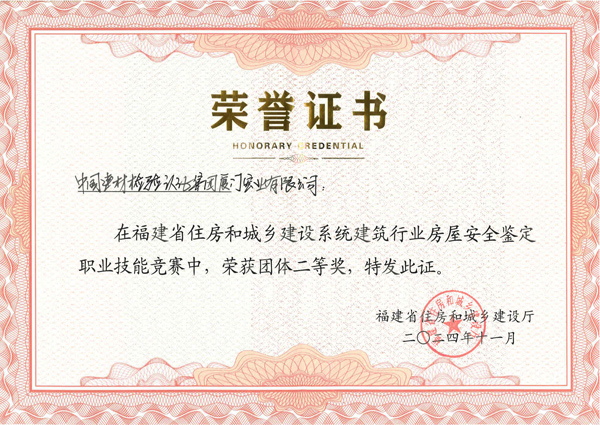 福建省住房和城鄉(xiāng)建設系統(tǒng)建筑行業(yè)房屋安全鑒定職業(yè)技能競賽“團體二等獎”