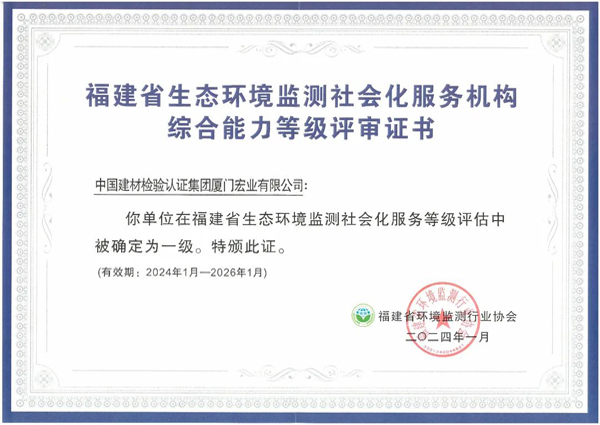 福建省生態(tài)環(huán)境監(jiān)測社會化服務等級評估一級