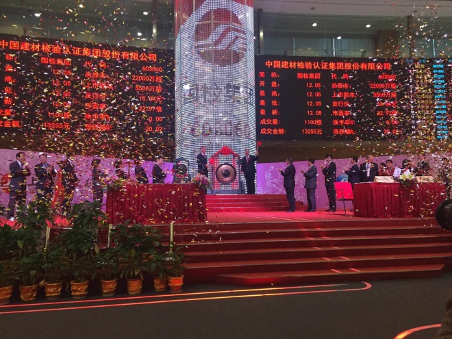 2016年11月9日,中國建材檢驗(yàn)認(rèn)證集團(tuán)股份有限公司(以下簡稱“國檢集團(tuán)”)在上海證券交易所成功掛牌上市。中國建筑材料聯(lián)合會會長喬龍德,中國建材集團(tuán)有限公司董事長宋志平,中國建材集團(tuán)有限公司副董事長、中國建筑材料科學(xué)研究總院院長、國檢集團(tuán)董事長姚燕,上海證券交易所副理事長張冬科,安信證券副總裁秦沖,中國建材集團(tuán)有限公司外部董事趙吉斌、沙鳴、張燕玲,中國標(biāo)準(zhǔn)化研究院院長馬林聰,國家質(zhì)量監(jiān)督檢驗(yàn)檢疫總局原總工程師、國際質(zhì)量科學(xué)院院士劉卓慧,中國分析測試協(xié)會副會長兼秘書長張渝英等出席掛牌儀式。期間宋志平、姚燕、秦沖分別致辭,姚燕與張冬科分別代表國檢集團(tuán)和上海證券交易所簽訂《上市協(xié)定書》并互贈上市紀(jì)念品。國檢集團(tuán)在A股市場正式亮相。